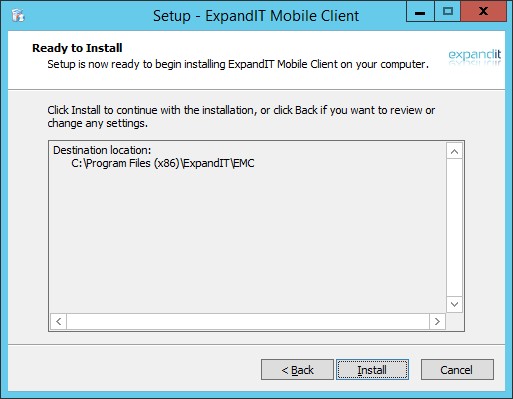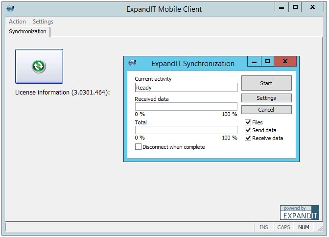 • Now the ExpandIT Mobile Client program can be located on your desktop or in Start -> Program Files -> ExpandIT -> Mobile Client. Clicking the ExpandIT Mobile Client icon will start the program.